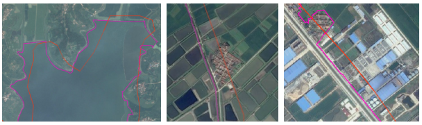 图4 自然保护地界线按岸线、沟渠和道路等实际地物勘正示例