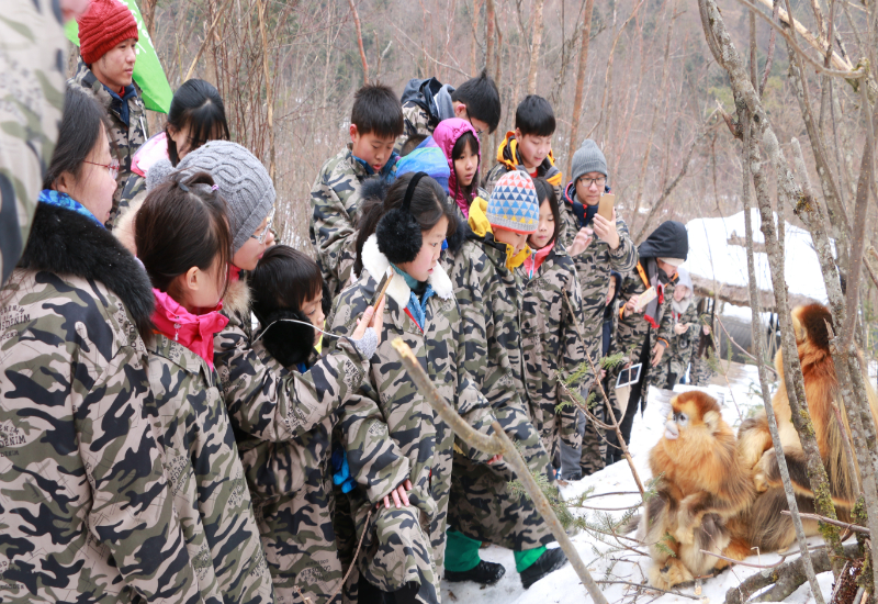 学生研学走进神农架国家公园大龙潭金丝猴基地(神农架国家公园管理局供图)