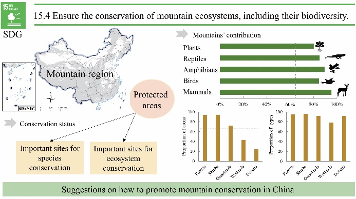 山地保护是联合国可持续发展议程的重要组成部分中国超过 85% 的哺乳、鸟类、爬行和两栖动物物种生活于山区自然保护地覆盖了四分之一的山地生物多样性重要区域生物多样性保护空缺主要位于青藏高原东南部、横断山脉及东南丘陵未来山地保护应优先关注狭域分布的生态系统类型。