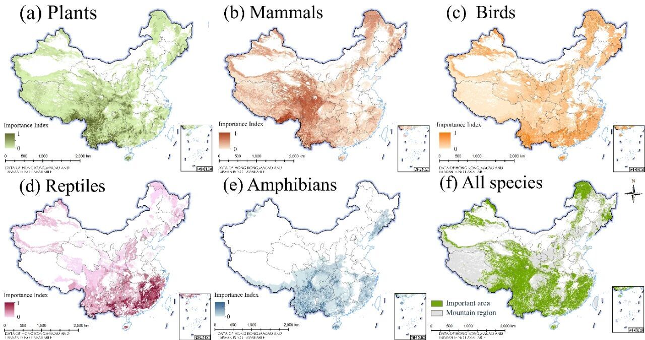 山地保护是联合国可持续发展议程和《生物多样性公约》目标的重要内容。中国山地约占陆地面积的三分之二,使得山地生态保护在国家战略中具有重要意义。尽管数千年的农业耕作和近年来快速的城市扩张,导致我国低海拔平原地区的野生动植物种群数量大幅减少,但山地凭借独特的海拔梯度、复杂的地形条件以及有限的开发强度,仍保留着相对丰富的生物多样性。厘清山地对我国生物多样性的贡献、明确当前保护问题,是科学制定保护政策的重要前提。基于上述背景,中国科学院生态环境研究中心研究员徐卫华研究团队在本刊发表论文China’s mountain biodiversity and conservation status。该研究从物种到生态系统层面量化中国山地生物多样性,评估自然保护地对重要区域的覆盖情况,系统回答了“中国的山地生活着多少物种?它们对我国生物多样性的贡献有多大?山地保护的效果如何?”等关键问题,研究成果可为生物多样性保护政策提供基于证据的见解,助力于国家层面生物多样性保护目标的实现。
